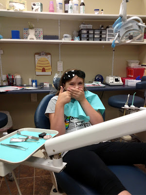 | All drugged up, relaxed, and ready for 3 baby teeth to be extracted! |