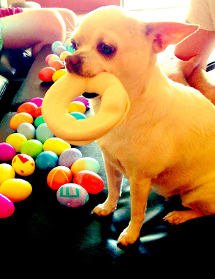 | LOUIS WAS SUPER EXCITED EATING HIS EASTER TREAT! WHILE CHECKING OUT WHAT EVERYONE ELSE GOT. |